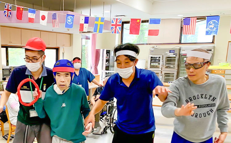また、視覚に障がいがある方への支援にも力を入れており、白杖を使った歩行練習や室内での訓練を定期的に行っています。
